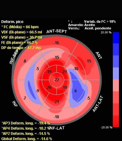 O Ecocardiograma com Avaliação de Strain Miocárdico consiste em uma técnica avançada da ecocardiografia, com o uso de softwares específicos que caracterizam a deformação miocárdica. O Strain Miocárdico agrega informações valiosas ao ecocardiograma convencional, consistindo em uma avaliação mais detalhada da função sistólica das câmaras cardíacas. O exame avalia o strain miocárdico do Ventrículo Esquerdo (principal cavidade cardíaca), do Ventrículo Direito e do Átrio Esquerdo.